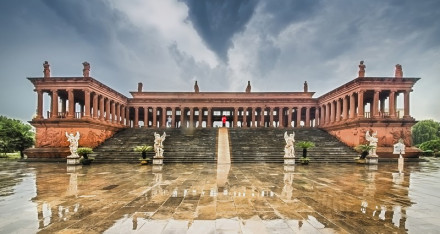 宙斯神廟原型位于希臘奧林匹亞村奧林匹亞山上,是為了祭祀宙斯而建,它是古希臘最大的神廟之一。八里河旅游區(qū)的宙斯神廟是依照復(fù)原的模型建造的,整座建筑鳥(niǎo)瞰成U型,上面覆蓋著錯(cuò)層框架式屋頂。