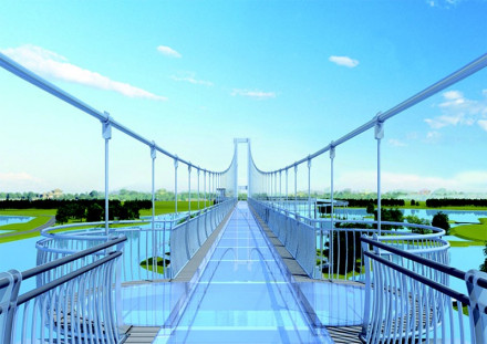 八里河懸空水上觀光玻璃天橋,全長(zhǎng)425米,寬3米,全高55米,采用全透明特種玻璃建造,像一條蜿蜒的飛龍盤旋在八里河水面之上。將9D聲光電碎彩屏、花鳥(niǎo)游魚(yú)立體特效等流行科技元素與橋面結(jié)合震動(dòng),同時(shí)還有音效。 |