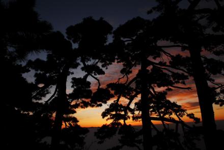 牯牛降峰峰有青松,無(wú)松不奇異,牯牛松漫山遍野,郁郁蔥蔥,樹(shù)冠如華蓋,干枝似虬龍,或怪獸張牙舞爪,或仙女廣袖輕舒,有的游龍走蛇,有的鳳凰展翅,千姿百態(tài),各顯神奇。雖沒(méi)有黃山上的松樹(shù)名氣大,卻比其更多一份天然情趣。那“連理松”本是兩株,日久天長(zhǎng)長(zhǎng)成一體,“在地愿為連理枝”,美好的愿望在這里得到印證;“探海松”長(zhǎng)在危崖之上,主桿挺直,枝椏都曲曲折折探出崖外老遠(yuǎn);在一塊突出的巖石上,一松兀立如同雄鷹,那神情恰似一幅國(guó)畫(huà)鷹石圖;更令人嘆為觀止的是一株長(zhǎng)在大石墩上的千年古松,高不到1米,卻有九枝十八丫,枝丫都長(zhǎng)達(dá)數(shù)米,伸出老遠(yuǎn),枝干長(zhǎng)滿(mǎn)著金黃色的蒼苔,遠(yuǎn)遠(yuǎn)望去,活象一條金甲巨龍盤(pán)于石上,有人名其為“蟠龍松”,甚至認(rèn)為此為天下第一奇松。嘆曰:牯牛降的黃山松姿態(tài)奇特,單株絲毫不遜色于黃山上的名松,而浩瀚的牯牛松林海,卻是黃山所沒(méi)有的。