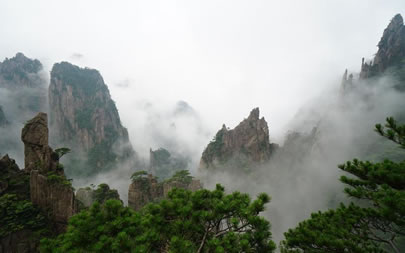 “自古黃山云成!,黃山是云霧之鄉(xiāng),以峰為體,以云為衣,其瑰麗多姿的“云海”以美、勝、奇、幻享譽(yù)古今,尤其是雨雪后的初晴,日出或回落時(shí)的“霞海”較為壯觀。怪石、奇松、峰林飄浮在云海中,可領(lǐng)略“海到盡頭天是岸,山登絕頂我為峰”的境界。