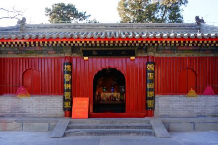 三山庵是八大處的第三處寺院,創(chuàng)建于金天德三年(1151年),山門(mén)面朝東北,是一座四合院落。山門(mén)殿為三開(kāi)間,左右各開(kāi)角門(mén)一扇;正殿五楹并配有耳房?jī)砷g;兩配殿門(mén)戶(hù)相對(duì)分列于正殿兩廂。山門(mén)殿懸額“三山庵”;垂聯(lián)“翰墨因緣舊;煙云供養(yǎng)宜”;正殿懸額“是大世界”,聯(lián)題:“慈目靜心法相;和風(fēng)甘雨祥云”。此院額聯(lián)皆為今人手筆。
