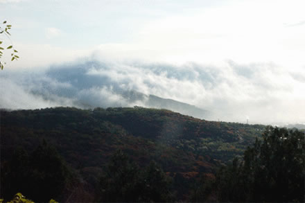 仲夏清晨,雨后天氣濕潤(rùn)時(shí),常可見(jiàn)如素如練的云霧飄浮于三山之腰,似斷還連的畫(huà)中之境。注目靜觀,或自峰后繞于嶺前,或從石隙游出升騰;有時(shí)凝固不甚流動(dòng),有時(shí)行走又很疾速。翠微山、虎頭峰間凝然不動(dòng)者居多,盧師山青石黛樹(shù)中則流走如飛者眾。概山勢(shì)高低不同所致。
