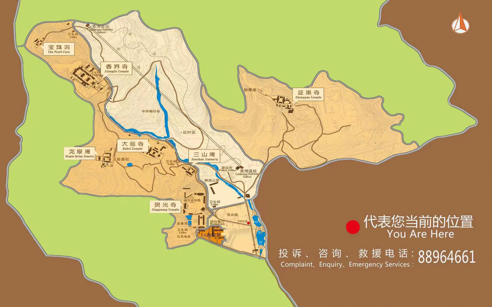 翠微山歷史上又稱(chēng)為平坡山,山上蒼松翠柏,四季常青,該山居中,海拔最高,三山庵、大悲寺、龍泉庵、香界寺、寶珠洞五座古剎分布其間,是八大處公園的主體山。