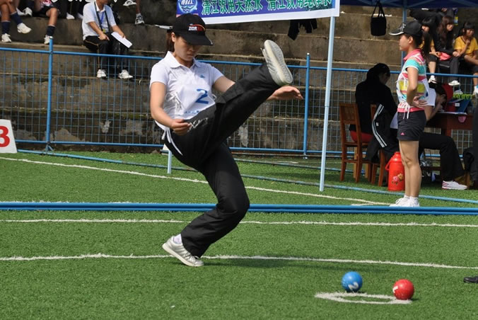 蹴球(踢石球) 蹴球起源于清代的“踢石球”,主要流行于滿、蒙古、回等民族中。蹴球是用腳底“踹”球,以擊中對方球為勝,極具趣味性和觀賞性。 蹴球比賽時,參賽者腳跟著地,腳掌觸球,用力踢球,以擊中對方球或把對方球擊出場外為得分。所踢之球為直徑10厘米的硬塑料實心球,分為紅藍兩色。因為蹴球的競賽規(guī)則類似臺球,所以蹴球也被稱為“用腳踢的斯諾克”。 2007年6月20日,蹴球(踢石球)被北京市人民政府公布為北京市第二批市級非物質文化遺產名錄。 風景名勝
