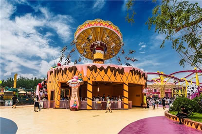 歡樂谷第四期在原螞蟻王國(guó)的區(qū)域重建,13個(gè)游樂項(xiàng)目分別用不同的甜品造型筑造包裝。