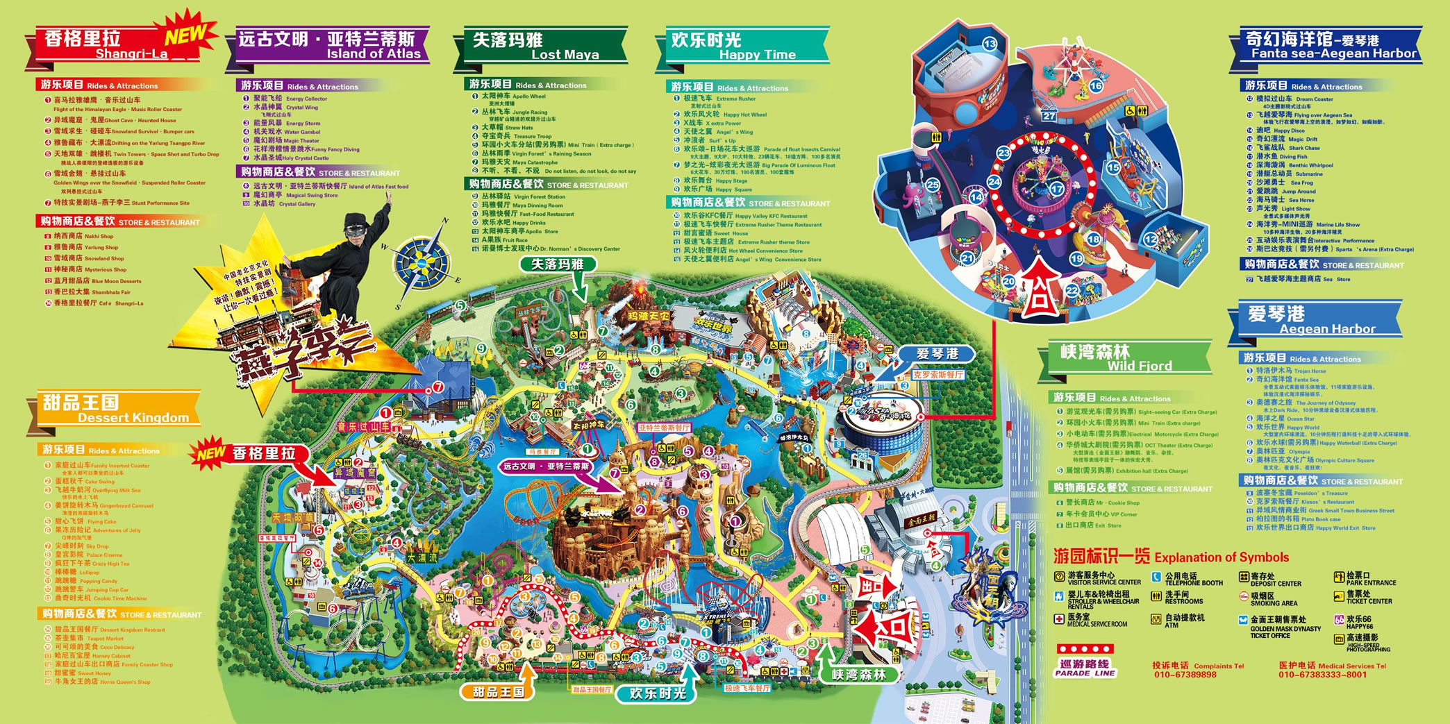 北京歡樂谷由峽灣森林、愛琴港、失落瑪雅、香格里拉、甜品王國(guó)、亞特蘭蒂斯、歡樂時(shí)光、七大文化主題區(qū)(另外還有位于愛琴港的奇幻海洋館、歡樂世界主題漂流三期項(xiàng)目)組成,通過主題文化包裝及故事演繹,以建筑、雕塑、園林、壁畫、表演、游樂等多種形式向游客展示了地球的生態(tài)環(huán)境與地域文化,園區(qū)內(nèi)精選世界經(jīng)典文明和創(chuàng)意智慧,設(shè)置了50余項(xiàng)主題景觀、10余項(xiàng)主題表演、30多項(xiàng)主題游樂設(shè)施、20余項(xiàng)主題游戲及商業(yè)輔助設(shè)施。30多萬(wàn)平方米的綠化、8萬(wàn)平方米的湖面給予歡樂谷良好的生態(tài)環(huán)境;七大主題區(qū)域給予歡樂谷世界各地的人文氣質(zhì);并且具有國(guó)際國(guó)內(nèi)雙重標(biāo)準(zhǔn)的安全檢測(cè)、人性化的服務(wù)配套和智能化的全園信息系統(tǒng)。。
