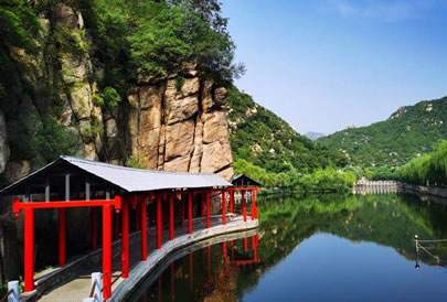 蒼龍峽觀飛龍瀑:古人曾賦詩蒼龍峪:“蒼龍日暮還行兩,老樹春深更著花”。傳說蒼龍峪歷年夏季水量大增,溪水奔流不息,老龍行雨所致,加之峪內(nèi)植被好,山色蒼茫,故名“蒼龍峪”。蒼龍峪由溝口至飛龍瀑,全長約2公里,沿溝口向溝內(nèi)的溪流行走,石磴迂回, 步步登高,沿途有“浴鳳潭”、“月波潭”等大小泉潭18處,有“涵云”、“浴露”、“危石泉聲”等石刻小品,可供游人攝影留念。沿溪流兩岸山勢(shì)崢嶸,草木繁茂,行至最高處,但見“飛龍瀑”一條白色匹練,自十幾米的高處飛瀉而下,水花四射,濤聲悅耳。