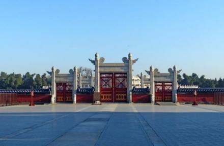 天壇公園占地面積205公頃,由兩重壇墻環(huán)護,分為內(nèi)、外兩壇。外壇墻周長6553米,南北相距1657米、東西相距1703米。內(nèi)壇墻周長4152米,南北相距1283米、東西相距1025米。