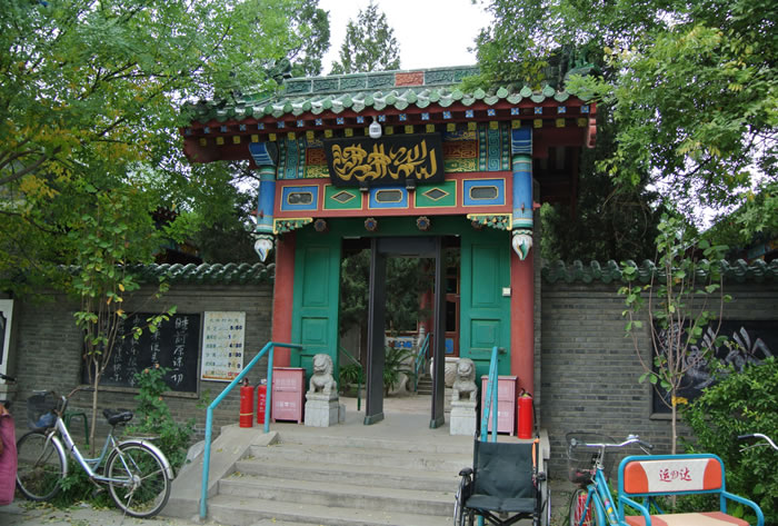 張家灣清真寺 張家灣清真寺,位于張家灣鎮(zhèn)西街。中軸線上主體建筑禮拜殿,勾連搭四卷,硬山簡瓦,規(guī)模較大。一三兩卷為箍頭脊,二卷為調(diào)大脊,大吻壯觀,小獸玲瓏。第四卷明間為窯殿,四角攢尖,綠琉璃寶頂高聳天空,次間則為卷棚頂,別具一格。博古彩畫精美,西頭磚雕別致,嵌山方圓木窗活潑,井口天花鮮艷整潔,南北配殿與禮拜殿之間有海棠柱曲廊相連。結(jié)構(gòu)嚴謹,錯落有致。 |
