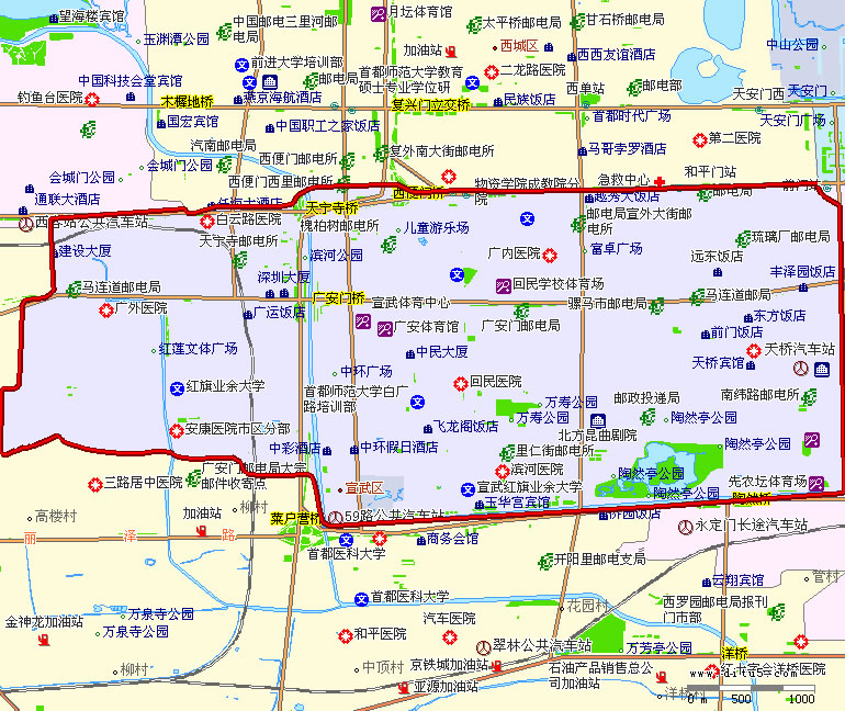 宣武區(qū)轄8個街道:大柵欄街道、天橋街道、椿樹街道、陶然亭街道、廣安門內(nèi)街道、牛街街道、白紙坊街道、廣安門外街道。