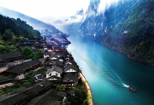 烏江畫廊指從龔灘至貴州沿河100余千米的烏江河段,是烏江流域景色最為壯麗的一段。船行其中,水碧山青如水墨長卷,有“船在水中行,人在畫中游”之感,因此有“千里烏江,百里畫廊”之譽。
