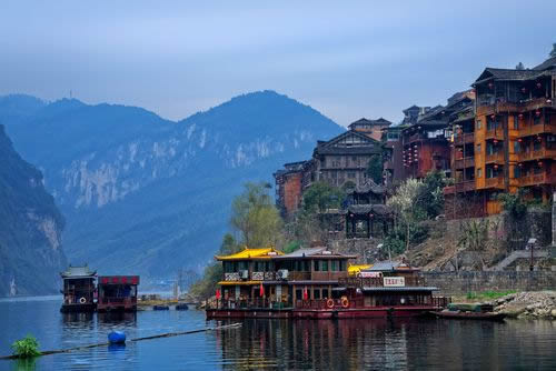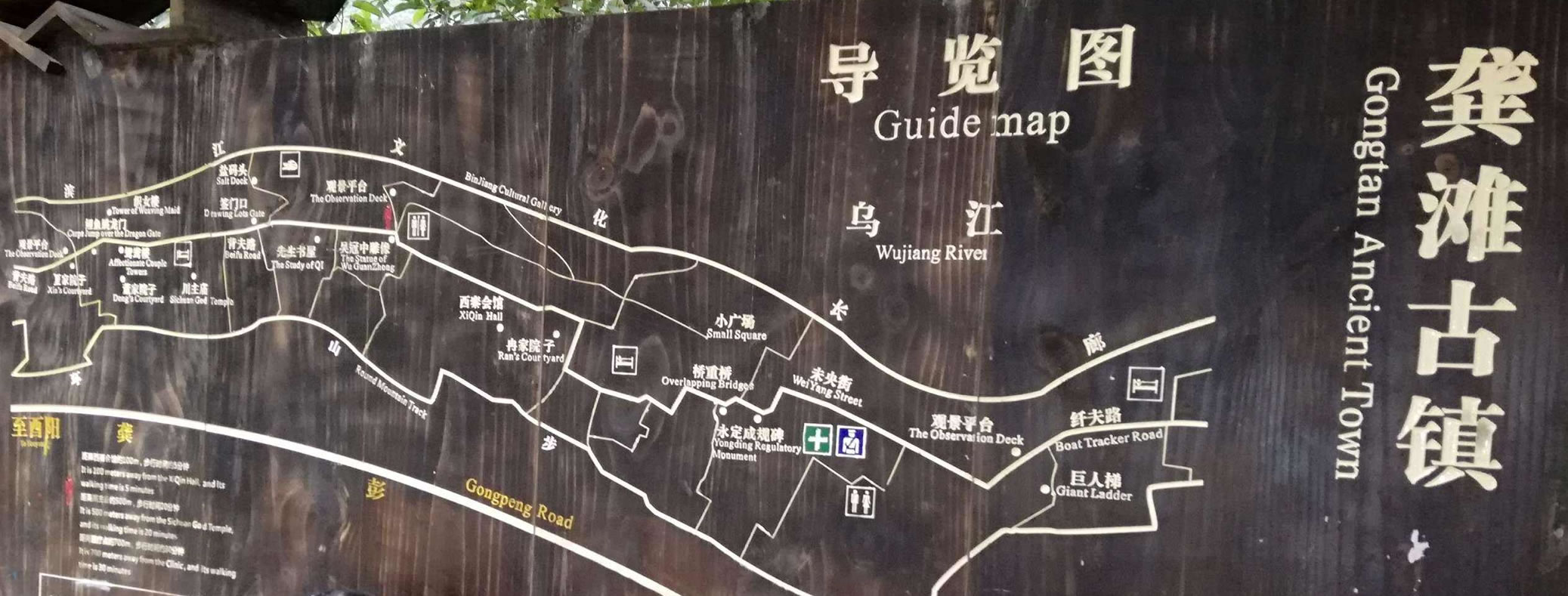 龔灘古鎮(zhèn)源自蜀漢,建置于唐,距今1800年的歷史。古鎮(zhèn)街道歷代修葺,至2005年總長約3千米,皆以石板街、吊腳樓、坡屋面、小青瓦為風(fēng)貌特征。其中老街長1.5千米,存寺廟、祠堂、古碼頭、古纖道、古梯道、古橋梁、古牌坊、古樹、古井、古碑石等。青石板街將古鎮(zhèn)按照不同的歷史背景、民族文化以商業(yè)業(yè)態(tài)形式布局為五段,以榨油、織布為特色的“油坊路”,以背夫腳夫文化為主題的“背夫路”,以西秦會館為代表建筑的“西秦路”,展示纖夫文化的“纖夫路”,以鹽商鹽號為特色的“老鹽路”。有50余堵別具一格的封火墻、200多個古樸幽靜的四合院、50多座形態(tài)各異的吊腳樓,獨具地方特色,是中國國內(nèi)保存完好且頗具規(guī)模的明清建筑群。