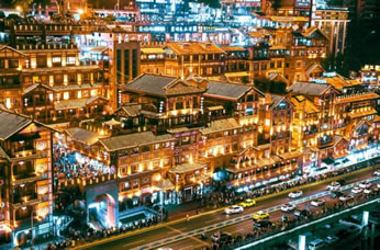 洪崖洞,原名洪崖門,是古重慶城門之一,位于重慶市渝中區(qū)嘉陵江濱江路88號,2003年,總投資3.85億元對洪崖洞片區(qū)進行舊城拆遷改造,于2006年9月竣工開業(yè),是兼具觀光旅游、休閑度假等功能的旅游區(qū)。