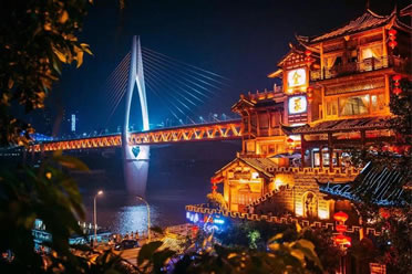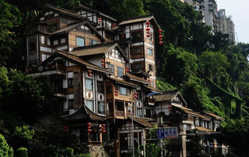 吊腳樓作為西南地區(qū)獨有的傳統(tǒng)民居建筑,最早可追溯到東漢以前。由于重慶山多,土地緊張,祖先依山就勢,因地制宜,利用木條、竹方,懸虛構屋,陡壁懸挑,依山建造出一棟棟樓房。依山、靠崖、臨江是重慶吊腳樓的獨到之處,洪崖洞吊腳樓建筑群復原了巴渝古都風貌,把古重慶最具特色的吊腳樓、古牌坊、木垂花、懸挑梁、雕刻樓廊、半山街市和青石板路等山地民居集中展現(xiàn)出來,在懸崖峭壁上建成高13層的吊腳樓群,因此被建筑業(yè)界稱為“中華懸崖城”,被中外媒體譽為“天空之城”。