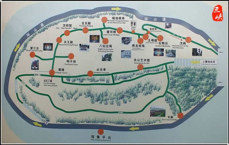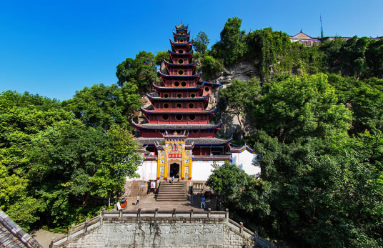 石寶寨古建筑群于明萬歷年間始建,景區(qū)總占地面積5.4萬平方米,建筑面積3486平方米。南臨長江航道,西北側有后溪河和尖山子,東北與新石寶鎮(zhèn)相望。寨樓山頂海拔211.04米,三峽工程蓄水到175米水位后,石寶寨四面環(huán)水,在巨型圍堤環(huán)繞下,石寶寨成為長江一處大型江中“盆景”,享有長江“小蓬萊”美稱。寨樓依山而建,飛檐展翼,極為壯觀。閣樓共12層,通高56米。寨頂有古剎天子殿,臨巖筑墻、殿宇巍峨、蔚為壯觀,還有文物陳列室和鴨子洞、流米洞、石寶姑娘、老鷹找路等。
