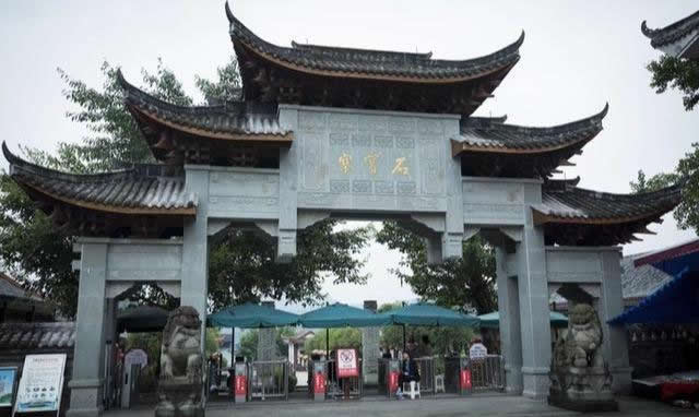 “江上明珠”牌坊位于連接新石寶鎮(zhèn)與石寶寨的大橋橋頭,牌坊上橫書“江上明珠”4個大字,為1992年時任中央政治局委員、國務院副總理田紀云在石寶寨調研時的題詞。