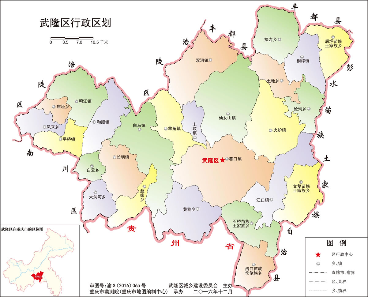 武隆區(qū)管轄4個(gè)街道、10個(gè)鎮(zhèn)、8個(gè)鄉(xiāng)、4個(gè)民族鄉(xiāng):