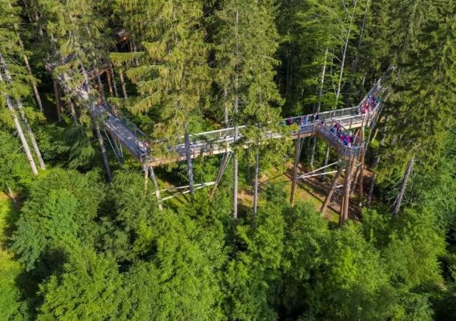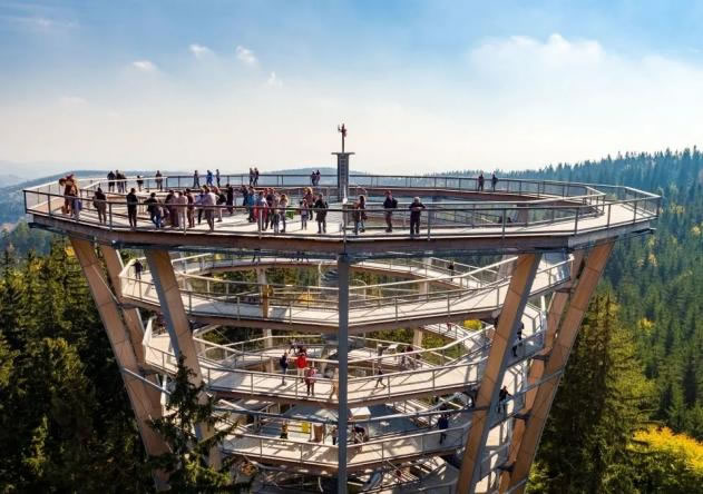通過螺旋步道把人送到15米的高度,從而進入森林高空體驗棧道。同時開展攀巖、速降、攀爬等戶外體育運動。