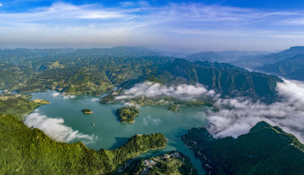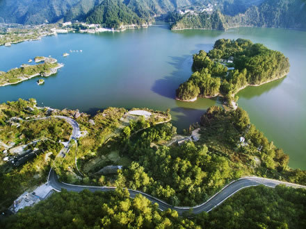 重慶黔江小南海國家地質(zhì)公園,位于重慶市黔江區(qū)小南海鎮(zhèn)南海村,重慶與湖北交界處,距黔江城北部30余千米。是一個融山、海、島、峽諸風光于一體的高山淡水湮(堰)塞湖泊,也是中國國內(nèi)迄今保存最完整的一處古地震遺址。