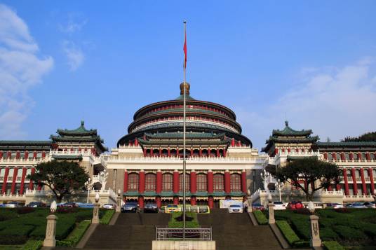 重慶市人民大禮堂,位于重慶市渝中區(qū)人民路173號(hào),于1951年6月破土興建,1954年4月竣工,是一座仿古民族建筑群,是重慶十大文化符號(hào),是中國傳統(tǒng)宮殿建筑風(fēng)格與西方建筑的大跨度結(jié)構(gòu)巧妙結(jié)合的杰作,也是重慶的標(biāo)志建筑物之一。