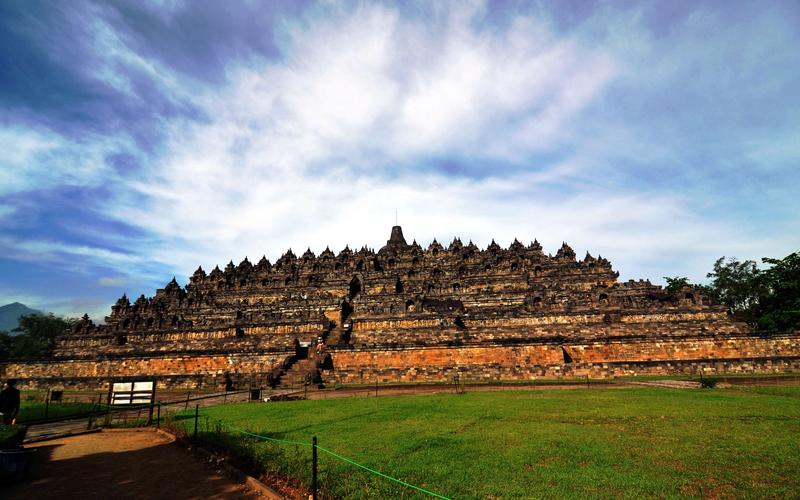婆羅浮屠寺廟群 婆羅浮屠位于東南亞的印度尼西亞,大約建于公元750年至850年間,由當時統(tǒng)治爪哇島的夏連特拉王朝統(tǒng)治者興建。“婆羅浮屠”這個名字的意思很可能來自梵語"Vihara Buddha Ur",意思就是“山頂?shù)姆鹚?rdquo;。婆羅浮屠大約建于九世紀,公元1006年因火山噴發(fā)而被埋入地下。直到806年后的1812年被英國人萊佛士發(fā)現(xiàn),婆羅浮屠得以重見天日。與中國的長城、印度的泰姬陵、柬埔寨的吳哥窟并稱為古代東方四大奇跡。 婆羅浮屠是作為一整座大佛塔建造的,從上往下看它就像佛教金剛乘中的一座曼荼羅,同時代表著佛教的大千世界和心靈深處。整個建筑分為三層,基座是五個同心方臺,呈角錐體;中間是三個環(huán)形平臺,呈圓錐體;頂端是佛塔。四周圍墻和欄桿飾以淺浮雕,總面積2500平方米;圍繞著環(huán)形平臺有72座透雕細工的印度塔,內有佛龕,每個佛龕供奉一尊佛像。婆羅浮屠寺廟群在聯(lián)合國的援助下于1970年得以重建,現(xiàn)已經成為印度尼西亞最著名的景點之一。