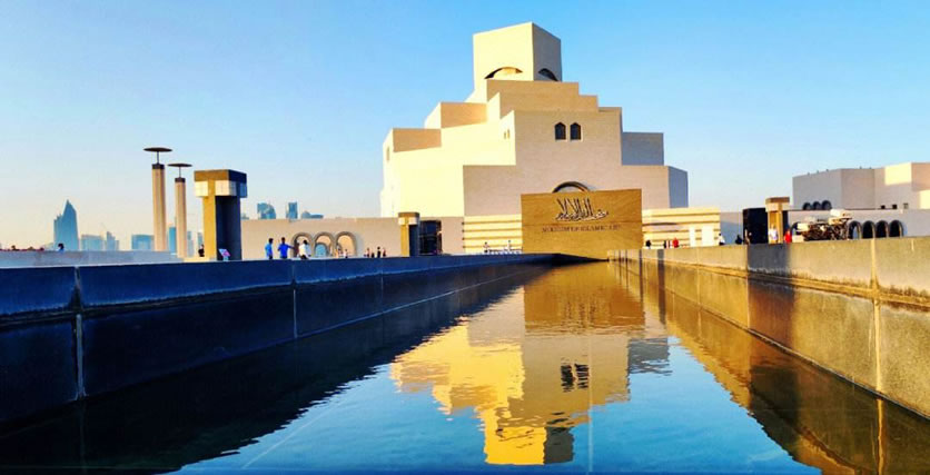 伊斯蘭藝術(shù)博物館 多哈伊斯蘭藝術(shù)博物館位于卡塔爾首都多哈海岸線之外的人工島上﹐占地4.5萬(wàn)平方米,是迄今為止最全面的以伊斯蘭藝術(shù)為主題的博物館。博物館外墻用白色石灰石堆疊而成,折射在蔚藍(lán)的海面上,形成一種懾人的宏偉力量。而再看建筑的細(xì)部,典型的伊斯蘭風(fēng)格幾何圖案和阿拉伯傳統(tǒng)拱形窗,又為這座龐然大物增添幾分柔和,稍稍中和了它的英武之氣。博物館中庭偌大的銀色穹頂之下,150英尺高的玻璃幕墻裝飾四壁,人們可以透過(guò)它望見(jiàn)碧海金沙。