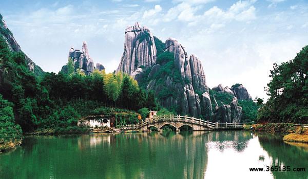 國家重點(diǎn)風(fēng)景名勝區(qū)、世界地質(zhì)公園一一太姥山,位于閩浙邊界的福建省福鼎市境內(nèi),北鄰浙江溫州118公里,南距福建福州200公里,雄峙于東海之濱,山海相依、傲岸秀拔,以 “山海大觀”稱奇。傳說東海諸仙常年聚會(huì)于此,故有“海上仙都”的美譽(yù)。它北望浙江雁蕩、西眺福建武夷,三者成鼎足之勢(shì),閩人稱武夷、太姥為雙絕,浙人視雁蕩、太姥為昆仲, 構(gòu)成閩越三大名山。 太姥山是一處以花崗巖峰林巖洞為特色,融山、海、川、島和人文景觀于一體的風(fēng)景旅游勝地,觀賞面積92.02平方公里,保護(hù)面積200平方公里,擁有太姥山岳、九鯉溪瀑、福瑤列島、晴川海濱四大景區(qū)和瑞云畬寨、冷城古堡、翠郊古民居三處獨(dú)立景點(diǎn)。旅游資源有武夷、雁蕩山水之秀麗;有黃山、泰山云霧之奇幻;有嶗山、三亞海景沙情;有普陀、武當(dāng)佛蹤道跡。游人就近便可登山、探洞、戲水、游島、漂流……尋覓古剎幽遠(yuǎn),領(lǐng)略畬寨風(fēng)情,一舉多得。