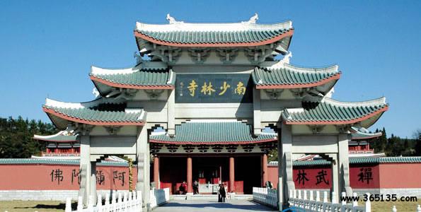 莆田南少林在福建省莆田市荔城區(qū)西天尾鎮(zhèn)北部層巒疊嶂,聞名天下的南少林寺就在這里。莆田南少林寺原名林泉院,據(jù)考古認(rèn)為“林泉院至遲在唐代或唐末即已存在”,但具體創(chuàng)建年代有待進(jìn)一步考證。林泉院的習(xí)武之風(fēng),緣起于唐初,它的經(jīng)磨歷劫,也與武風(fēng)有關(guān)。傳說,李世民登基后,輔公祏部將路得才聚眾東南沿海為非作歹,鬧得民不聊生。那些歹徒行蹤不定,聚散無常,如果派大軍圍剿,無異用拳頭打跳蚤,勞民傷財(cái),且難奏效。唐太宗只好把已封為大將軍的少林寺方丈曇宗找來,請他派武藝高強(qiáng)的僧兵懲治海盜。曇宗派十三棍僧之一的道廣帶領(lǐng)五百僧兵入閩平暴。暴亂平息后,沿海人民挽留這些救苦救難的活菩薩。道廣也感到盛情難卻,就回到嵩山少林寺稟告曇宗方丈。方丈當(dāng)即道出一偈:“傍海平盜日月久,九蓮山下有宿頭。南北千里同一寺,大乘禪在心中留。”道廣根據(jù)北少林方丈的偈語,找到了當(dāng)時(shí)就有名氣,且地形酷似嵩山的林泉院擴(kuò)寺定居。林泉院也就成為江南的少林分寺。該寺所在的林山村周圍有九座山圍成一圈,形如九瓣蓮花,寺院坐落在花心的位置上,因名九蓮山少林寺,俗稱南少林。清朝初年,各地抗清志士、武林俊彥紛紛來到具有習(xí)武傳統(tǒng)的南少林,把它作為反清復(fù)明的基地。由于叛徒的出賣,南少林被官軍攻陷,僧眾多被殺戮,寺院被夷為平地。沖出火海的武僧流落江湖,傳徒授藝,堅(jiān)持抗清斗爭。據(jù)傳,南拳的不少套路出自南少林。由于清廷的輿論封鎖,這一段歷史鮮為人知,只是在民間悄悄流傳。