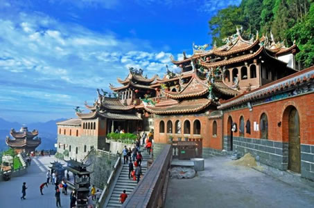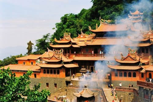 蓬萊祖殿為清水巖的主體建筑,創(chuàng)建于宋代。它依山臨壑,外觀呈“帝”字形,七妙地將人工建筑與自然巖壑融為體,古典雅,輪奐輪閏正殿為重檐山頂?shù)臉情w式建筑,由昊夭口、祖師殿、釋迦樓三部分組成,大殿兩側有檀樾廳、觀音廳、芳名廳、齋房、客舍等等,鱗次櫛比,相傳共有九十九間。蓬萊祖殿無論在建筑布局還是建筑風格以及雕技術、裝外飾工藝方面都頗具特色,是福建省重點文物保護單位。 |