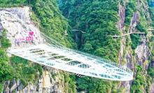 瀑布斜上方是新建設(shè)的玻璃觀景臺(tái)——天空之心,站在上面可俯瞰岱仙瀑布全景,有“人在空中走,景在腳下游”的美妙體驗(yàn)。這座懸空高度達(dá)314米的觀景臺(tái)位于岱仙瀑布斜上方,外挑懸空長(zhǎng)度約52米,面積520平方米。