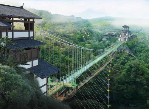 離地200米,全長300米,上層是(全透明玻璃無豎杠+10D全息特效)構(gòu)造橋面,除了比普通玻璃天橋恐怖10000倍,“深海巨鯊、彎彎曲曲的羊腸小道”等3D特效與“走一步碎一片玻璃”的全息碎裂效果令人提心吊膽;下層是步步驚心高空極限挑戰(zhàn)項(xiàng)目。