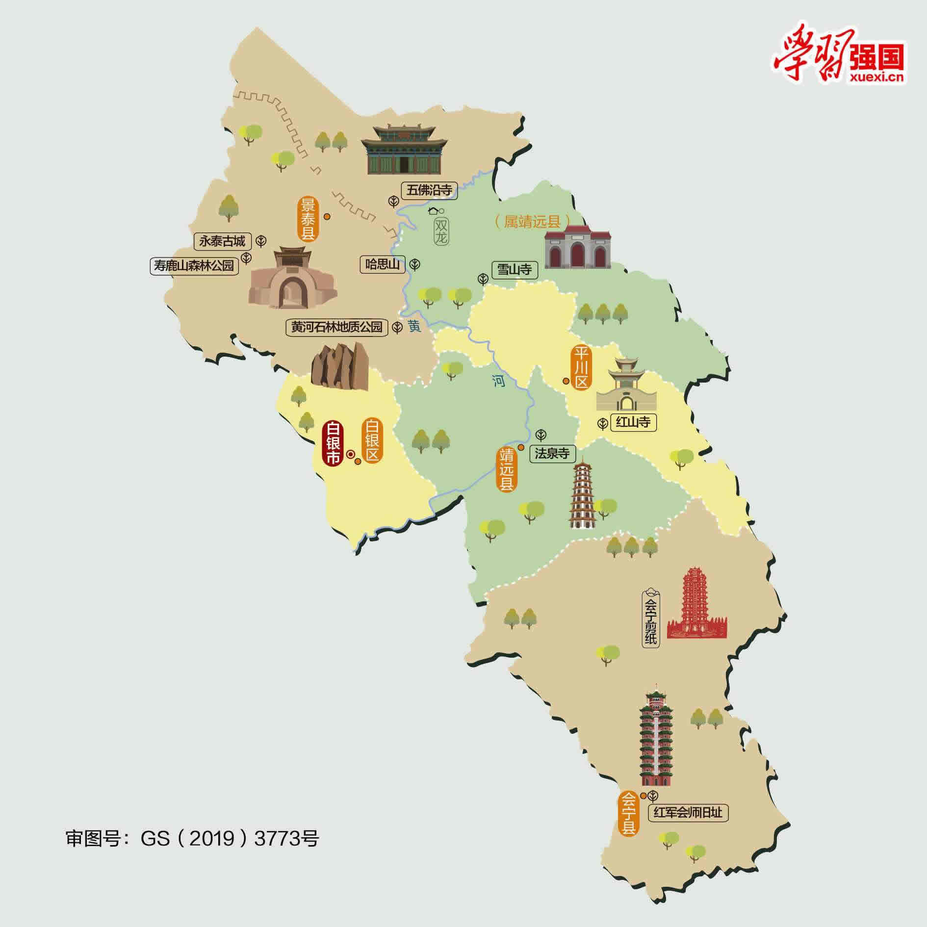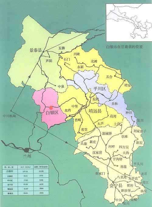 白銀市轄2個區(qū)、3個縣: