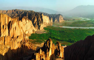 黃河石林生成于今400多萬(wàn)年的的第三紀(jì)末期和第四紀(jì)初期的地質(zhì)時(shí)代,由于地殼運(yùn)動(dòng),形成以黃色的河湖相砂礫巖為主、造型千姿百態(tài)的石林地貌奇現(xiàn)。石林景區(qū)陡崖凌空,景象萬(wàn)千,峰回路轉(zhuǎn),步移景變,其造型天造地設(shè)、鬼斧神工,猶如雕塑大師之夢(mèng)幻杰作!坝^音打坐”、“屈原問(wèn)天”、“木蘭遠(yuǎn)征”、“月下情侶”、“十里屏風(fēng)”“天橋古道”、“一線天”等高達(dá)幾十米甚至上百米的形態(tài)各異、千奇百怪的石柱石筍石林景觀隨處可見(jiàn)。中華民族的母親河——黃河,在這里形成S型的回水灣由南向北進(jìn)入寧夏地界,河的東岸除高聳的石林外,還有背山面河,林木蔥郁的“龍灣綠洲”。專家評(píng)價(jià):甘肅黃河石林集中國(guó)地質(zhì)地貌之大成,組合優(yōu)異,動(dòng)靜結(jié)合,國(guó)內(nèi)罕見(jiàn),西北獨(dú)有,堪稱中華自然奇觀的一處極具開發(fā)價(jià)值、高品位的自然生態(tài)旅游景區(qū)資源。 這里適合休閑度假、獵奇探險(xiǎn)、地質(zhì)考察、漂流攀巖等旅游娛樂(lè)項(xiàng)目,還可作為西部影視片、科學(xué)幻想片的最佳外景基地。甘肅黃河石林是中國(guó)西部旅游觀光的一處勝地,是黃土高原孕育而成的美麗奇葩。