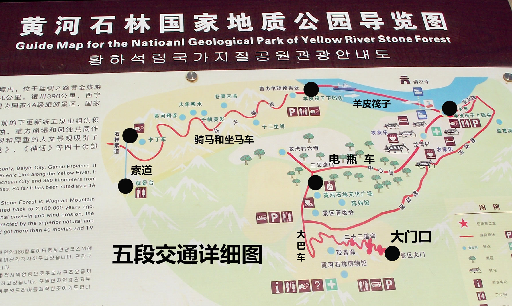 第一次看到黃河石林,便被它那氣象萬(wàn)千、雄渾壯觀的景象所震撼。黃河石林與國(guó)內(nèi)其它知名景區(qū)相比,以古、奇、雄、險(xiǎn)、野、幽見(jiàn)長(zhǎng),充分體現(xiàn)了粗獷、雄渾、樸拙、厚重的西部特色,使游客在回歸自然、領(lǐng)略奇異風(fēng)光的同時(shí),陶冶性情,修養(yǎng)身心。徜徉于黃河石林景區(qū),但見(jiàn)長(zhǎng)河抱日,峨峰接云,石林聳奇,危崖橫斷,河映崇山,曲流回旋,平疇十里,小村安臥,老屋舊椽,新灘故道,濃蔭鋪地,綠蔽河灣,繁棗滿枝,瓜果溢香,水車唱晚,浪遏皮筏,真乃世外桃源。若沒(méi)天橋古道拾級(jí)登上南山之巔,則峰林、曲流、綠洲、戈壁盡收眼底,讓人心曠神怡。而滄桑之變中不曾嬗變的原始力量,峽谷間透出的窮靈,陽(yáng)光里蕩溢的繁麗,又教人于感悟時(shí)慧眼頓開。至于觀音崖的兇險(xiǎn),老龍溝的深邃,盤龍洞的神奇,清涼寺的幽寂,還有環(huán)村十溝的撲朔迷離和峽谷內(nèi)景象萬(wàn)千、古韻猶存的石林峰柱的磅礴氣勢(shì),以及整個(gè)34平方公里景區(qū)內(nèi),山的夢(mèng)幻、河的靈秀,綠洲的靜謚,戈壁的逍遙,不僅令人在沉思遐想中忘卻煩憂,超脫塵俗,更能引人向上,催人奮進(jìn)。