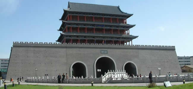 南城門又名昭武門,始建于隋朝,明代重修,原城樓為重檐歇山頂式建筑,造型古樸雄偉。據(jù)說,每當(dāng)天氣晴朗無風(fēng)的時候,夜晚登上城樓,可以清晰地聽到如細雨在瓦上淋漓的聲音,故有“夜雨打瓦”之稱,是涼州八景之一。