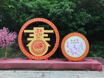 游客首先經(jīng)過三道“如意橋”,以金玉如意和大紅中國結(jié)而成,還有“福”“祿”“壽”三星和傳統(tǒng)八仙向游人報(bào)喜;