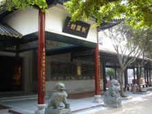 龍圖館極具嶺南古代建筑風(fēng)格。前后有廊,中間有天井,風(fēng)火山墻。館外館內(nèi)均有不少磚雕、木雕、泥塑、灰塑等,造工精巧,古樸典雅。大門外18棵羅漢松排列成行,象征包公出巡時的儀仗隊(duì)。旁邊是一排紅花紫薇,開花時節(jié),嫣紅翠綠,相映成趣。“龍圖館”橫匾下,有對聯(lián):“木石有靈再現(xiàn)包公清正事,匠師無憾巧傳百姓仰廉情”,“投硯鎮(zhèn)江流尚有遺待明古訓(xùn),蜚聲留宋典不曾枉法負(fù)平生”。既頌揚(yáng)了包公輝煌政績,又突出了龍圖館的文化內(nèi)涵。