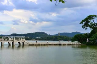 惠州西湖面積遼闊,湖岸彎環(huán)曲折,湖上洲嶼點(diǎn)綴、三面青山環(huán)抱。湖泊東西最寬處達(dá)4公里,南北最長達(dá)6公里,面積最大時(shí)有10平方公里,湖區(qū)面積約80平方公里。在煙波浩淼的湖面上,堤橋如帶,把湖面分割成五大部分,素有“五湖六橋”之稱。北宋大文學(xué)家蘇東坡贊惠州“山水秀邃”。這里是廣東著名的5A級(jí)國家風(fēng)景名勝區(qū)和旅游勝地。
