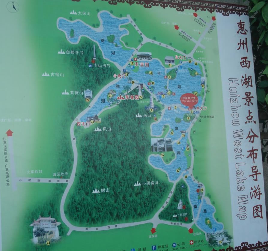 其山川秀邃、幽勝曲折、浮洲四起、青山似黛,古色古香的亭臺(tái)樓閣隱現(xiàn)于樹木蔥蘢之中,景域妙在天成,有“苧蘿西子”、“嶺南明珠”之美譽(yù),并有“大中國西湖三十六,唯惠州足并杭州” 的史載。歷代以蘇東坡、李商隱、楊萬里、祝枝山、陳堯佐、白玉蟾、梁鼎芬、丘逢甲為代表的400多位文人墨客曾踏足惠州,為西湖留下了寶貴的文化遺產(chǎn);近代孫中山、周恩來等領(lǐng)導(dǎo)人在惠州從事過革命運(yùn)動(dòng),在西湖留下了光輝的足跡。這些歷史古跡和革命勝跡與西湖的青山秀水融為一體,相得益彰。
