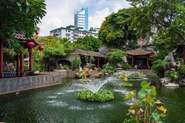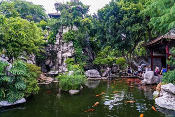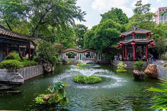 在花木配置方面,園內(nèi)花卉果木逾百種,除了嶺南園林常用的果樹(shù),還栽種了蘇杭園林特有的紫竹、枸骨、紫藤、五針?biāo)、金錢(qián)松、七瓜楓、羽毛楓等,并從山東等地搜集了龍順棗、龍瓜槐等北京樹(shù)種,其中銀杏、沙柳、紫藤、龍眼、水松等古木樹(shù)齡已百年有余。