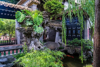 船廳前有兩口池塘,似將樓船浮在水中,船尾有丫環(huán)樓,船頭栽有一株沙柳,柳邊有一紫藤。船廳后邊,還有一株白木棉樹(shù),以其花淡黃近白而稱(chēng)奇,另有一棵單株結(jié)果的百年銀杏。與船廳跰足而建的惜蔭書(shū)屋和真硯齋,惜蔭書(shū)屋和真硯齋是供公子、小姐們讀書(shū)的場(chǎng)所。