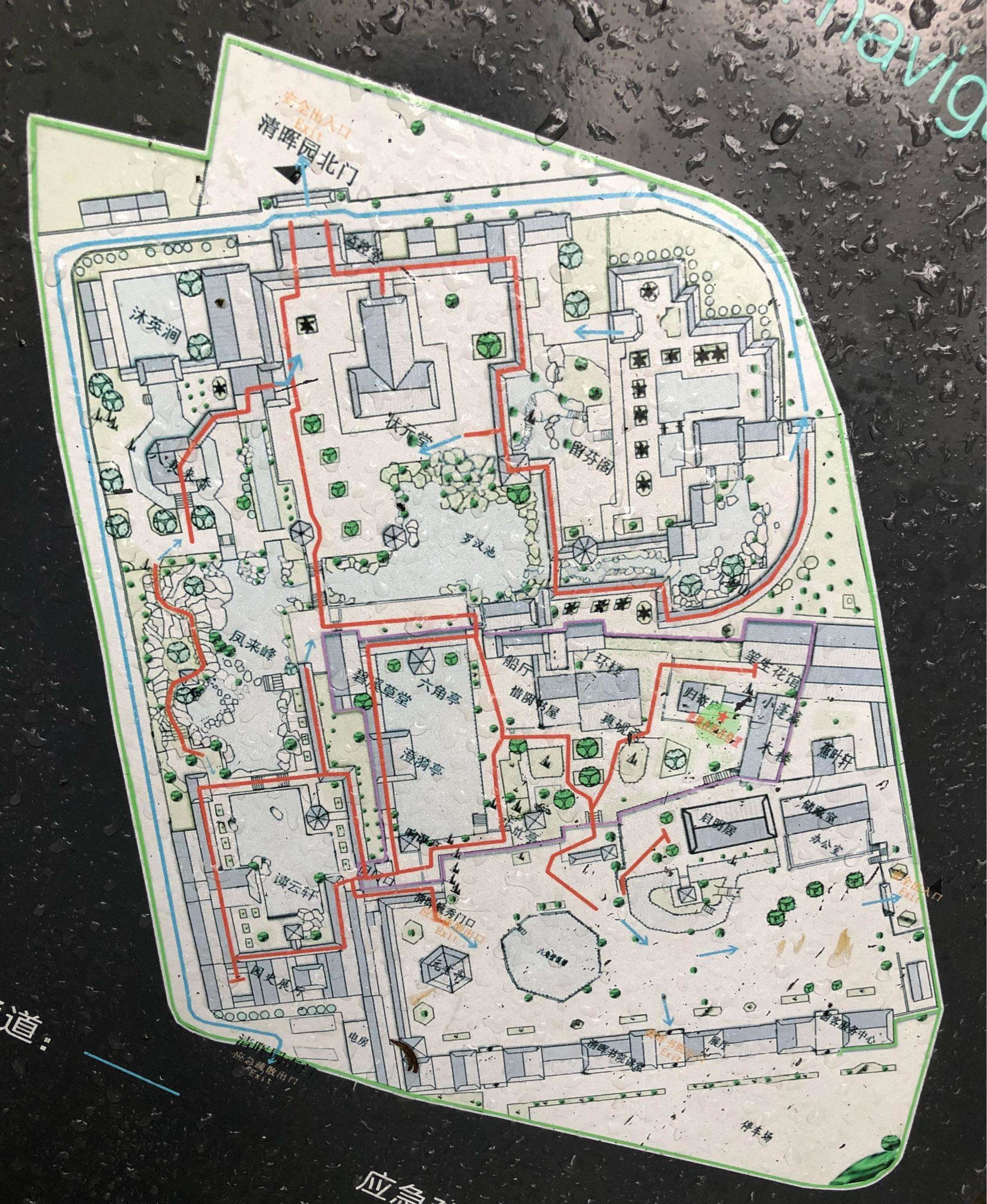 清暉園布局是大園包小園。清暉園的三大塊大體為:由原正門(mén)進(jìn)入的東南角區(qū),中部的舊園區(qū),西北部近年興建的新園區(qū)。區(qū)域間雖有分隔,但卻以游廊、甬道以及各式小門(mén)相互勾連,融為一體。以舊園區(qū)為例,其西部以方池為中心;中部偏北的船廳等是精華所在;南部的竹苑、小蓬瀛、筆生花館等組成庭院,形成園中有園,即大園包小園的格局和韻味。