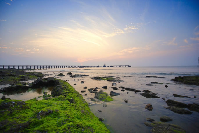 僑港浴場位于北海銀灘西部僑港鎮(zhèn),東起僑港道航燈塔,西至天湖酒店往西350米。灘寬500米左右,由純靜的高品位石英砂經(jīng)千年堆積而成,其砂子雪白如銀,細膩柔滑。