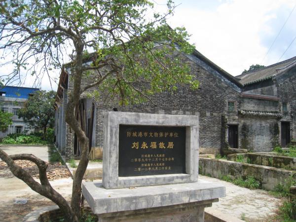 清光緒十二年(1886年)劉永福回國后,利用回鄉(xiāng)省親掃墓之機(jī),在故地那良大坡村(中越邊境)選地?fù)窦张d建住宅,經(jīng)過一年多的施工,住宅于光緒十四年(1888年)冬竣工落成。清光緒十二年(1886年)房屋占地面積約659.75平方米,建筑面積602.86平方米。坐東北向西南。房屋寬32.5米,進(jìn)深20.3米,兩層磚瓦結(jié)構(gòu)。共十二間,分上下座,上下座中央為廳,廳中央橫梁左右刻有正楷:“全家吉慶”“金玉滿堂”八個大字。上下座之間中央為天井,天井兩則樓附房。同年十一月,劉永福返欽州,購得板桂街莫姓舊宅,籌建晚年住宅“三宣堂”,決定于欽州定居,那良所建之房屋作為回鄉(xiāng)省親掃墓臨時住所。清光緒二十二年(1897年)春,劉永福返那良省親掃墓暫住后,返欽州(其母陳氏二品夫人之墓坐落于那良鎮(zhèn)樓村虎龍嶺)。光緒十七年(1891年)在欽州營建公館,命名為“三宣堂”,以紀(jì)念他援越抗法的光榮歷史。劉永福那良故居現(xiàn)為縣級(原防城各族自治縣)文物保護(hù)單位 清光緒十二年(1886年)