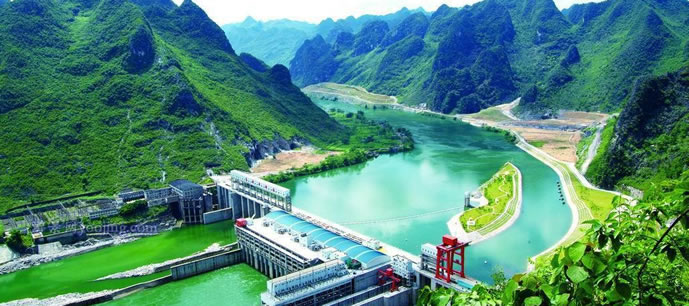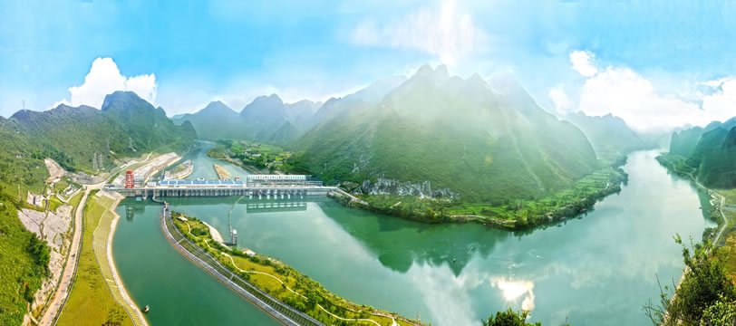 樂灘(惡灘)水電站庫區(qū)的紅水河源出于云南省沾益縣的南盤江,經(jīng)貴州流入廣西,是廣西以壯族為主體的少數(shù)民族的母親河、太陽河。紅水河是中國少有的水電資源。正在擴建中的樂灘(惡灘)水電站預算投資39.7億元,裝機容量為60萬千瓦,年均發(fā)電量為35億千瓦時,是紅水河上的十個梯級水電站之一。