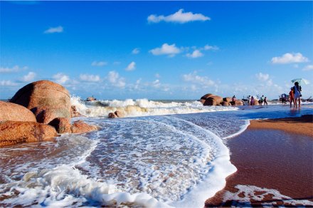 三娘灣位于欽州市南部犀牛腳鎮(zhèn)境內(nèi),距欽州市區(qū)38千米、南寧168千米、北海100千米,南臨北部灣,背倚烏雷嶺,是中華白海豚之鄉(xiāng)、電影《海霞》拍攝地。三娘灣以碧海、沙灘、奇石、綠林、漁村、海潮、椰林、中華白海豚而著稱, 2005年被評(píng)為“廣西十佳旅游景區(qū)”。有海上精靈中華白海豚,其中三娘石、鎮(zhèn)海石狗、“海霞姑娘”—三娘灣女子民兵隊(duì)、漁家旅館等景點(diǎn)。