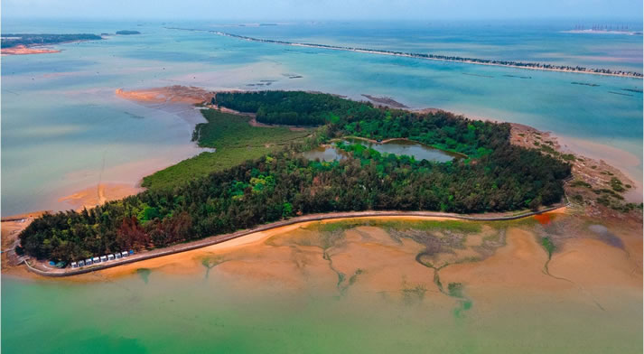 平山島,坐落在欽州城的南面,四面環(huán)水,與市區(qū)一水相隔土地平坦,林豐草茂,臨海的一面又突兀一座山峰,風(fēng)光旖旎,景色秀麗。康熙嶺標(biāo)準(zhǔn)海堤,全長(zhǎng)三十多千米, 號(hào)稱(chēng)廣西第一堤,俗稱(chēng)“海上長(zhǎng)城”。