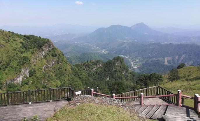 天龍頂國(guó)家山地公園位于岑溪市南渡鎮(zhèn),占地面積15平方千米。景區(qū)主峰天龍頂海拔1221米,相對(duì)高度221米,屬云開(kāi)大山山脈的主峰。景區(qū)內(nèi)海拔高于1000米以上的山峰還有石豹頂、公婆頂、湖廣頂?shù)人淖椒。景區(qū)的自然資源具有多樣性,景區(qū)內(nèi)有高山湖泊、原始森林、溝壑峽谷、溪谷瀑布群、海拔1000米之上的高山草甸、海拔1200多米的丹霞山峰、延綿近數(shù)十里的斷層崖壁等等,形成了一個(gè)具有旅游觀光、休閑度假、戶外運(yùn)動(dòng)等多功能的復(fù)合型景區(qū)。同時(shí),天龍頂國(guó)家山地公園也是一個(gè)純天然自然氧吧,空氣中負(fù)離子含量高達(dá)35000個(gè)/立方米。