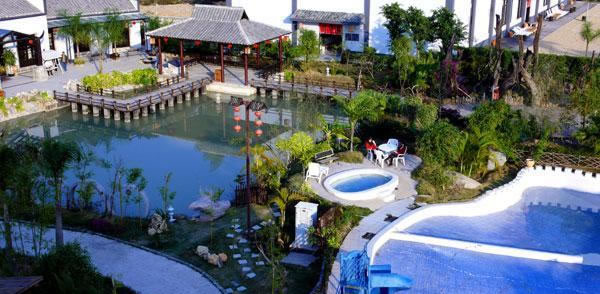位于中國溫泉之鄉(xiāng)的廣西陸川縣城區(qū)內,是一座集住宿、飲食、休閑度假、商務活動為一體的具有國際標準的三星級綜合性旅游休閑度假山莊。山莊占地70000多平方米,分別由標準客房區(qū)、別墅區(qū)、溫泉區(qū)、娛樂飲食區(qū)等系列設施組成。此外,山莊設有中餐廳、豪華包廂、大堂吧、歌舞廳夜總會,桑拿按摩,浴足、美容美發(fā)中心、各種規(guī)模的溫泉池等綜合服務設施。