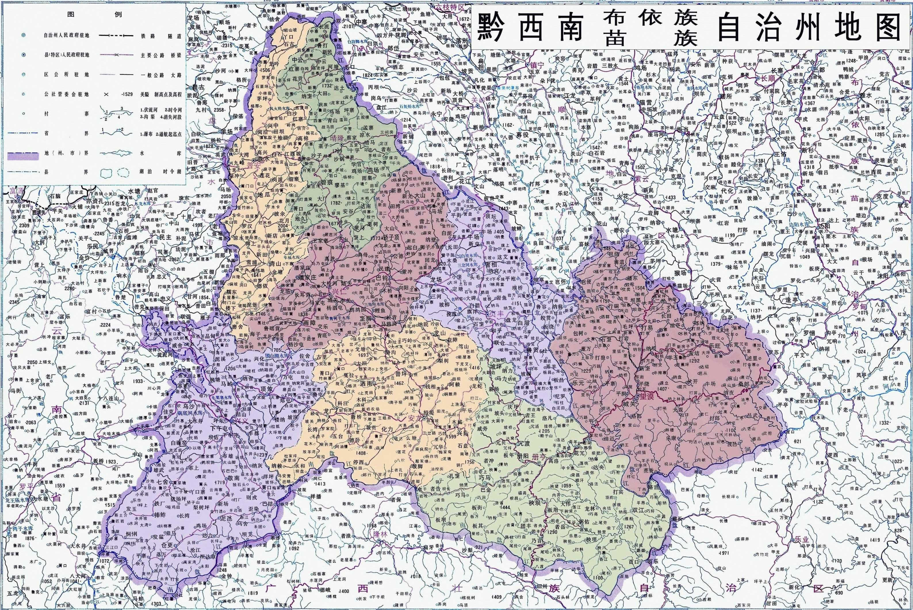 黔西南布依族苗族自治州轄2個縣級市、6個縣: